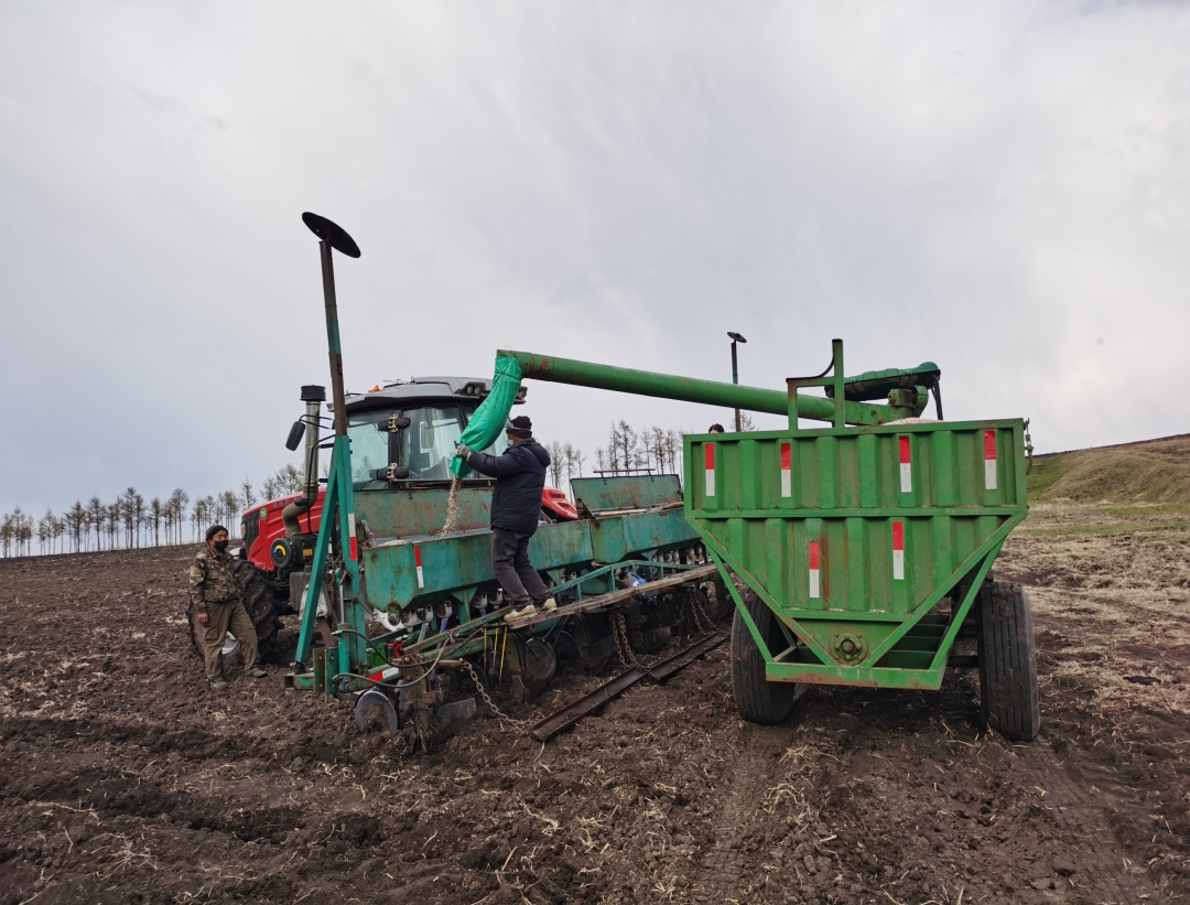 在黑龍江克東縣潤津鄉(xiāng)玉河村,德海玉米合作社的農(nóng)戶在有機肥還田地塊上播玉米。 資料圖